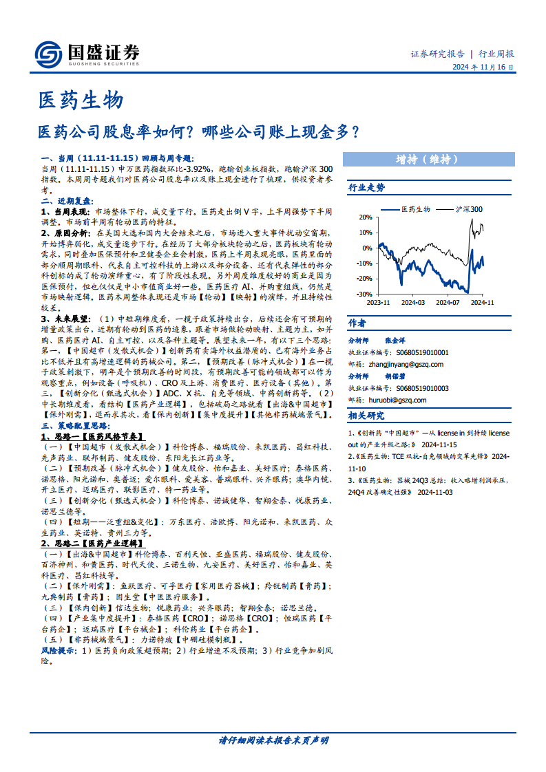 医药公司股息率如何?哪些公司账上现金多?