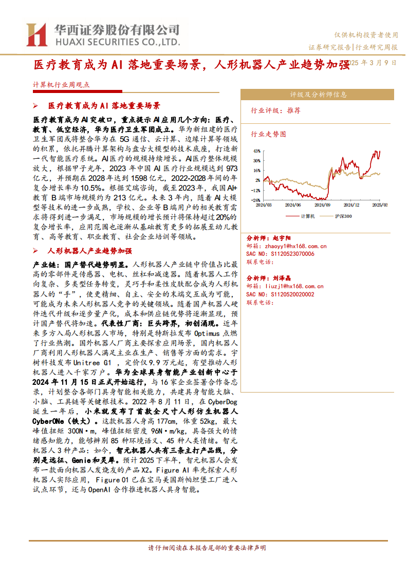 计算机行业周观点:医疗教育成为AI落地重要场景,人形机器人产业趋势加强