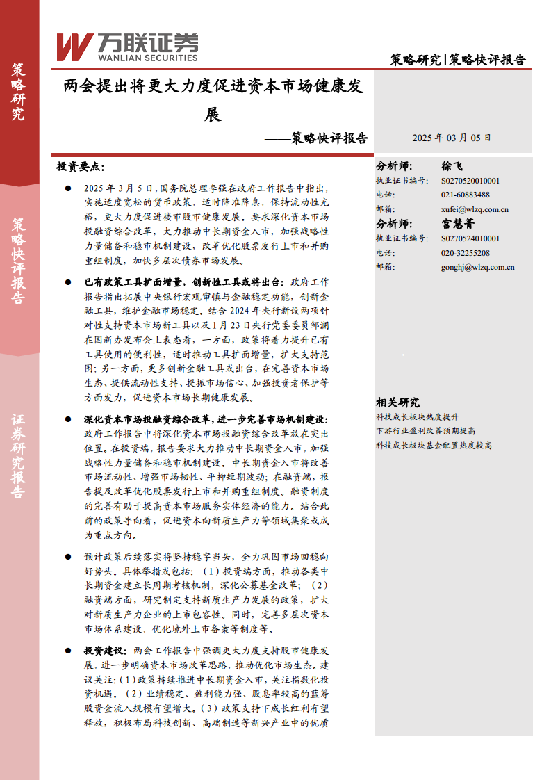 策略快评报告:两会提出将更大力度促进资本市场健康发展