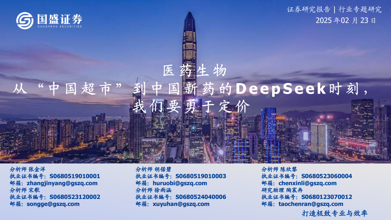 医药生物行业专题研究年:医药生物从“中国超市”到中国新药的DeepSeek时刻,我们要勇于定价