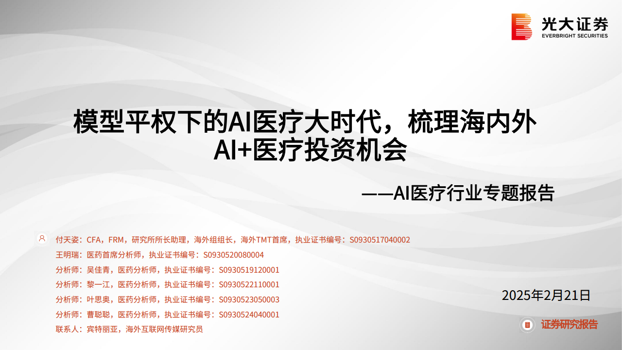 AI医疗行业专题报告:模型平权下的AI医疗大时代,梳理海内外AI+医疗投资机会