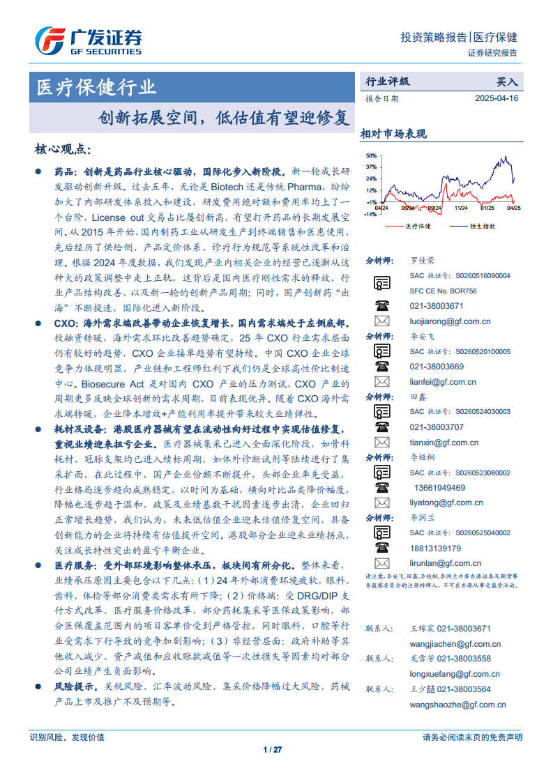 医疗保健行业:创新拓展空间,低估值有望迎修复