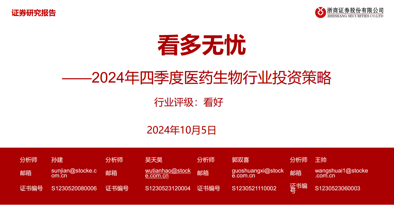 2024年四季度医药生物行业投资策略:看多无忧