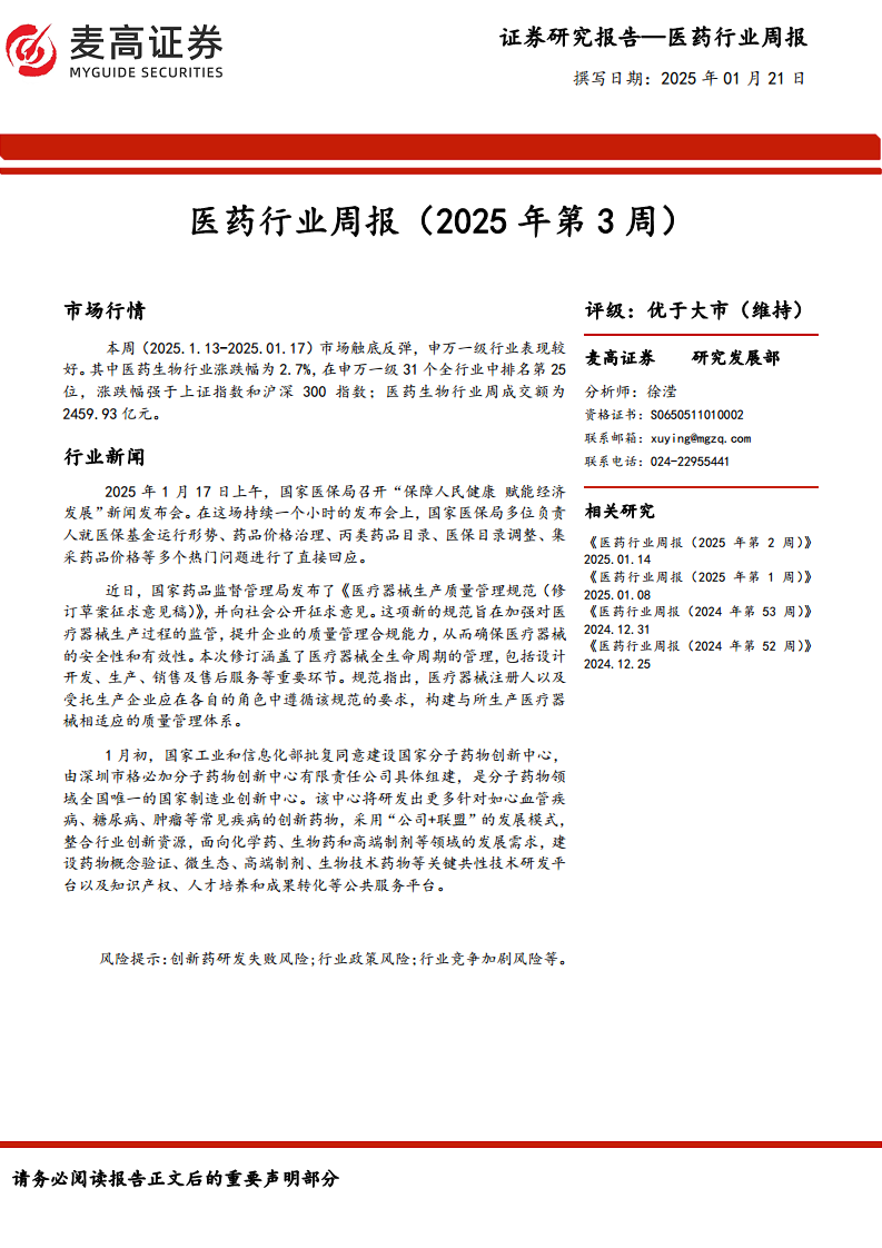 医药行业周报(2025年第3周)