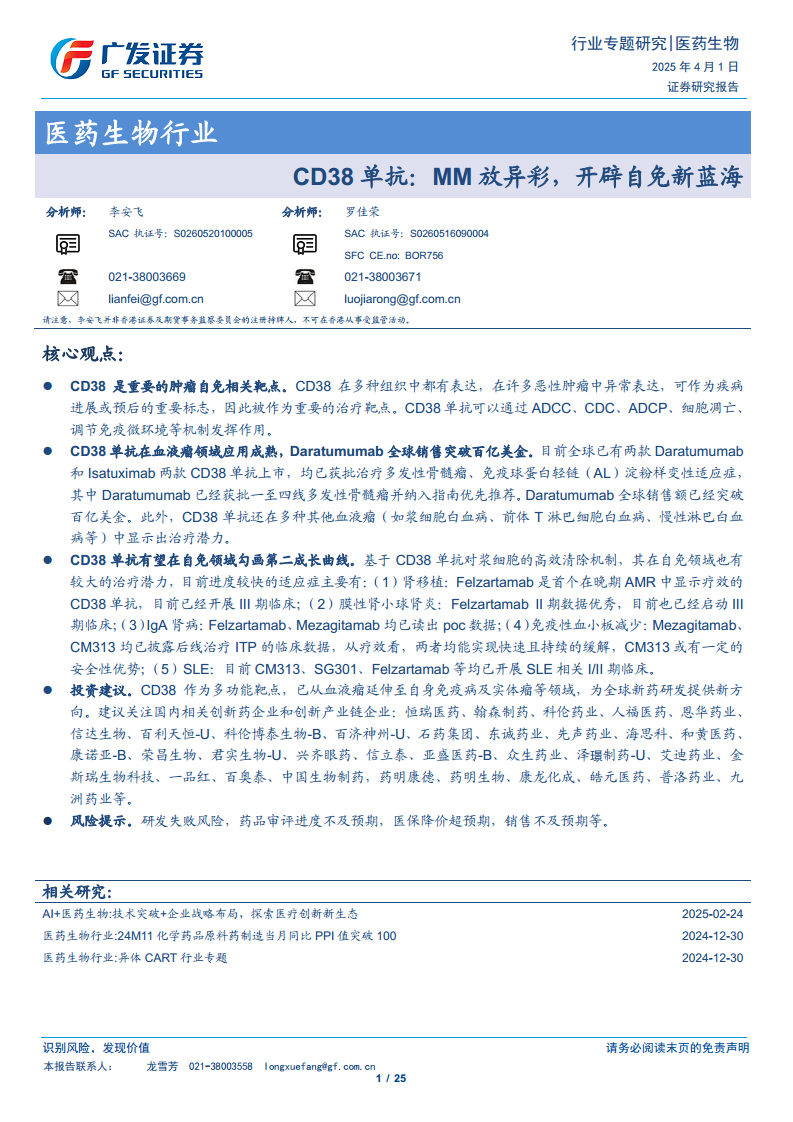 CD38 单抗:MM 放异彩,开辟自免新蓝海