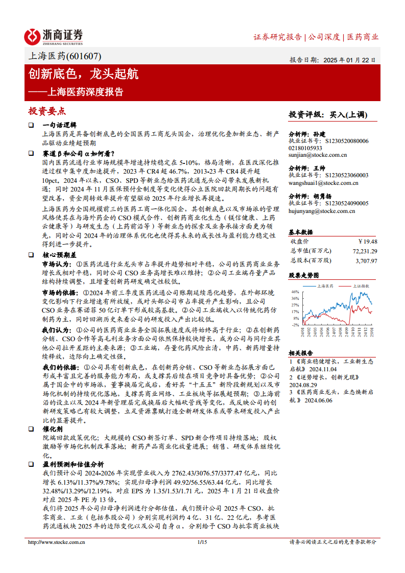 上海医药(601607):创新底色,龙头起航