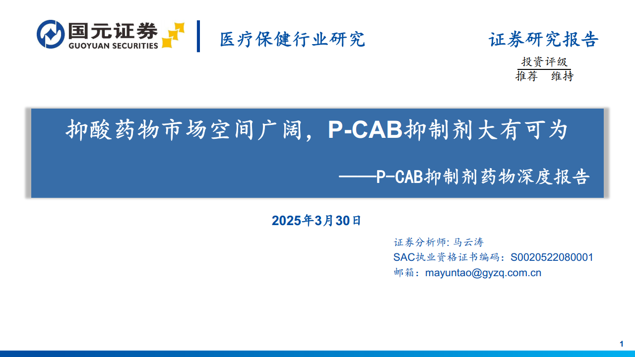 医疗保健行业PCAB抑制剂药物深度报告:抑酸药物市场空间广阔,PCAB抑制剂大有可为