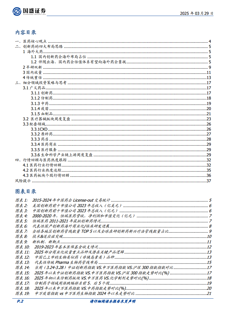本报告深入分析了2025年3月24日至3月28日期间医药生物行业的市场表现与未来趋势,核心观点在于强调创新药作为行业增长的核心驱动力。报告指出,在政策优化、商业健康险支持以及全球化进程加速等多重利好因素下,医药板块整体持乐观态度。创新药的四大布局思路——海外大药、早研双新、国内放量和传统重估——构成了未来投资的主线,旨在引导投资者把握行业结构性机会。