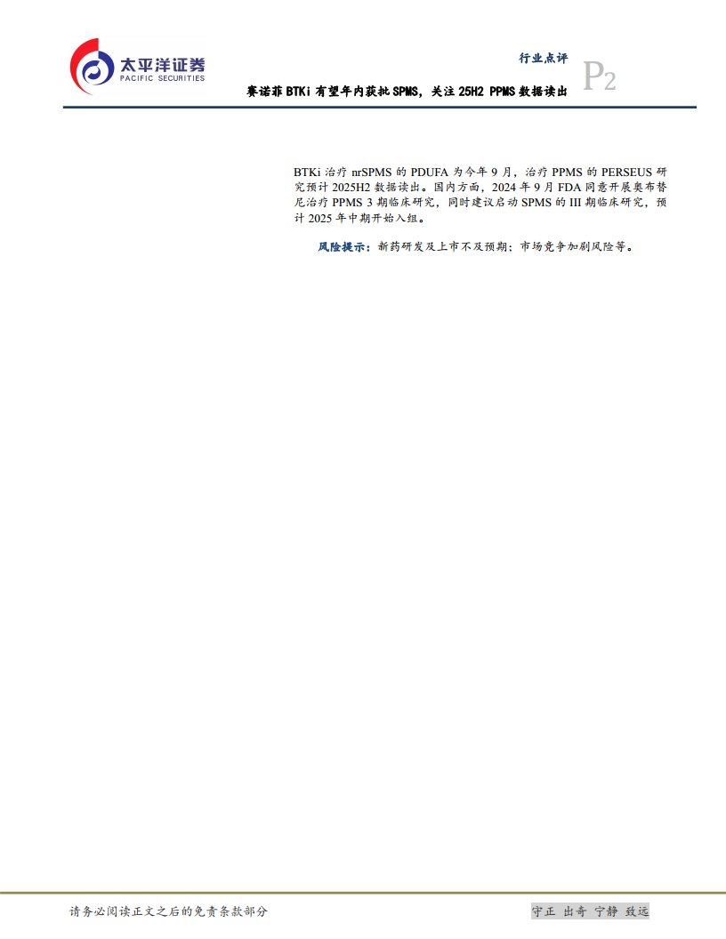 赛诺菲BTKi有望年内获批SPMS,关注25H2PPMS数据读出