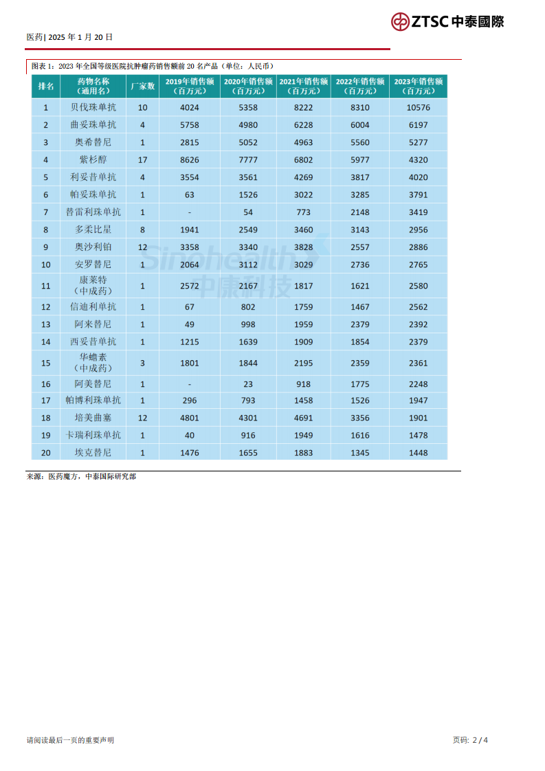 安徽省医保工作会议提出将牵头全国生物药集采。药品纳入集采的基本条件之一是需有三家以上企业生产。根据米内网数据,截至2023年,符合此条件的生物药品种有7个,其中包括贝伐珠单抗注射液、注射用曲妥珠单抗、利妥昔单抗注射液和阿达木单抗注射液等常用产品。信达生物和复宏汉霖是其中三个产品的著名生产商,受此消息影响,两家企业股价出现下跌。