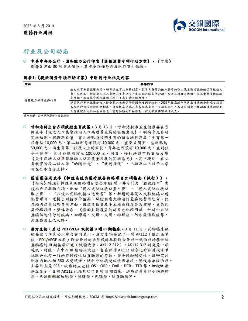 促消费、鼓励生育政策有望带动消费医疗需求,年报季关注药品和CXO