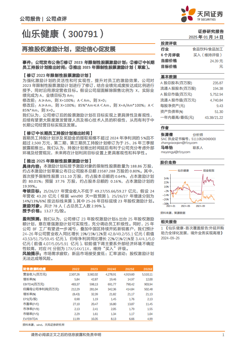 仙乐健康(300791):再推股权激励计划,坚定信心促发展
