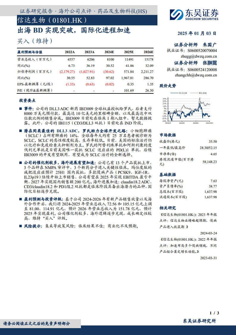 信达生物(01801):出海BD实现突破,国际化进程加速
