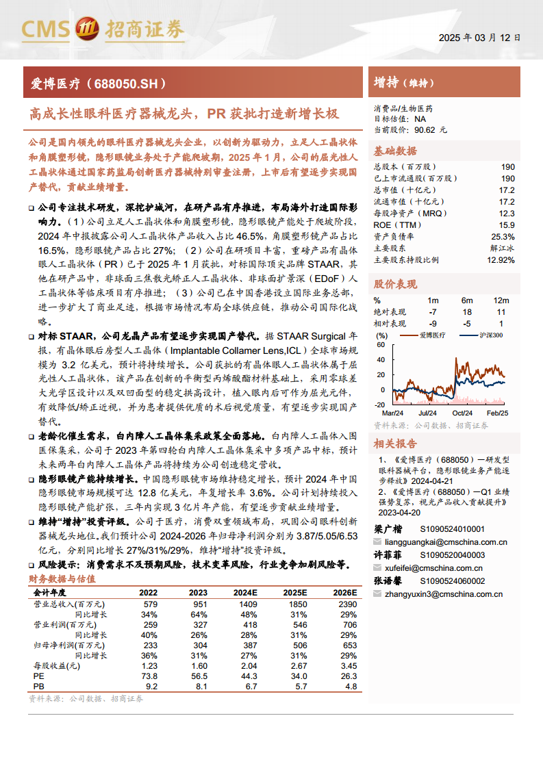 - 公司背景与产品线: 爱博医疗成立于2010年,并于2020年7月在科创板上市,是中国领先的眼科医疗器械企业。公司产品线丰富,涵盖人工晶状体、角膜塑形镜、隐形眼镜以及其他眼科手术治疗、近视防控和视力保健配套产品。