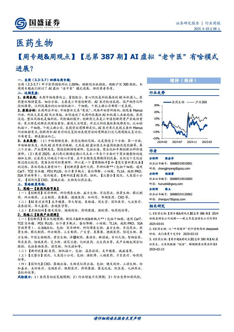 医药生物行业周报:【周专题&周观点】【总第387期】AI虚拟“老中医”有啥模式进展?