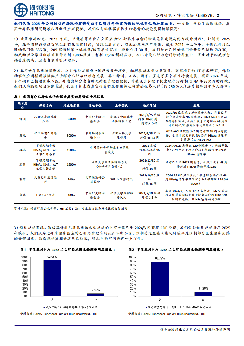 特宝生物的核心产品派格宾预计在2025年将受益于乙肝诊疗供需两侧的积极变化而加速放量。在需求侧,政策推动、真实世界临床研究进展以及新适应症的获批将显著提升派格宾在医生和患者中的接受度。在供给侧,公司持续扩大销售团队规模并提升销售效率,确保产品更广更深地覆盖市场。