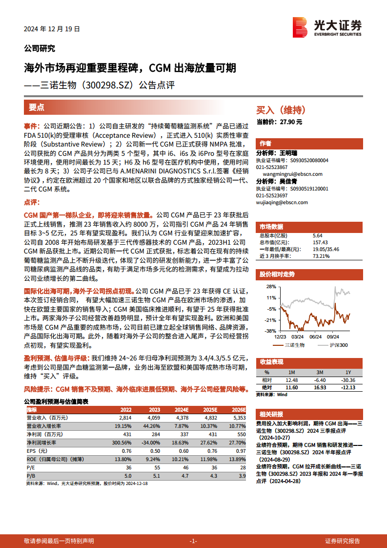 三诺生物(300298):海外市场再迎重要里程碑,CGM出海放量可期