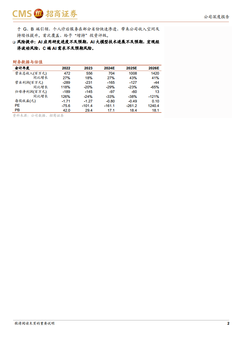 风险提示包括:AI应用研发进度不及预期、AI大模型技术进展不及预期、宏观经济波动风险以及C端AI需求不及预期风险。