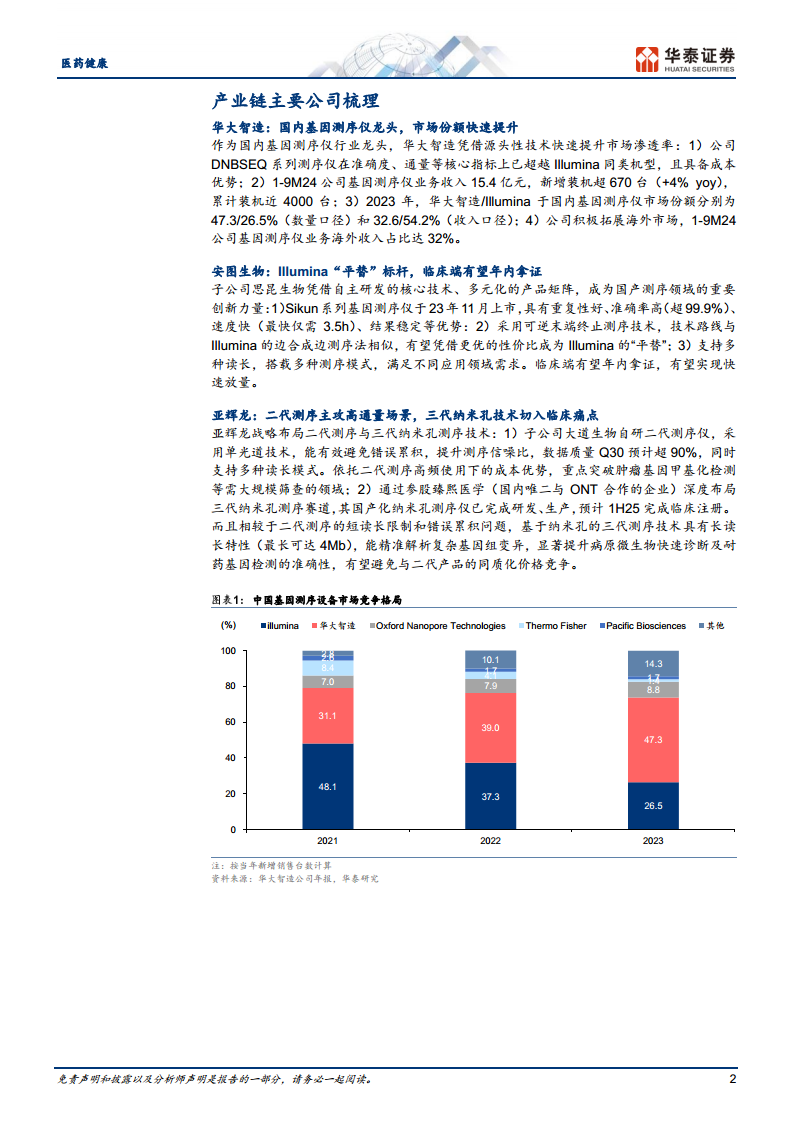 国产测序企业正凭借持续的技术创新、成本优势、优质的售后服务和完善的渠道布局,加速抢占市场份额。以华大智造、安图生物、亚辉龙为代表的头部企业,不仅在核心技术上取得突破,完善了产品矩阵,更将应用领域从传统检测拓展至新兴领域,有望在政策驱动下实现快速增长,重塑行业竞争格局。