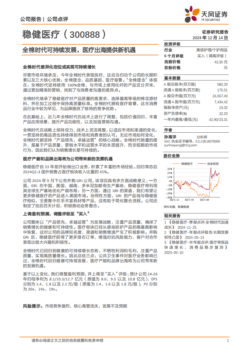 稳健医疗(300888):全棉时代可持续发展,医疗出海提供新机遇