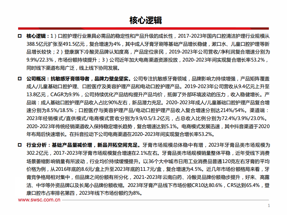 登康口腔(001328):产品升级+渠道突围,老牌国货迎来成长新动能