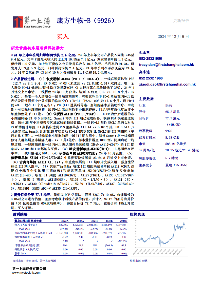 公司通过战略性配售有效补充了运营资金,财务结构逐步优化。基于对核心产品未来市场表现,特别是AK112海外市场潜力的乐观预期,分析师上调了目标价,维持“买入”评级,反映了市场对其长期发展前景的信心。