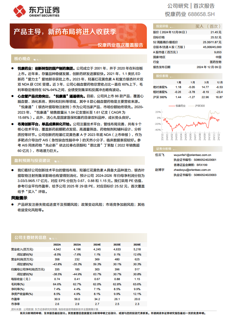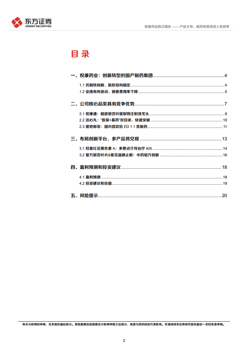 - 悦康药业成立于2001年,并于2020年在科创板上市,标志着其从仿制药向创新药转型的战略方向。