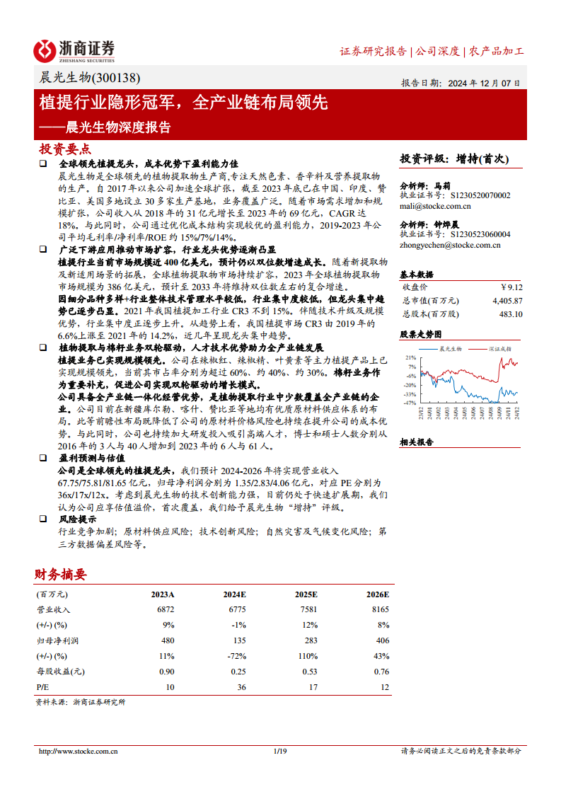 晨光生物(300138):深度报告:植提行业隐形冠军,全产业链布局领先
