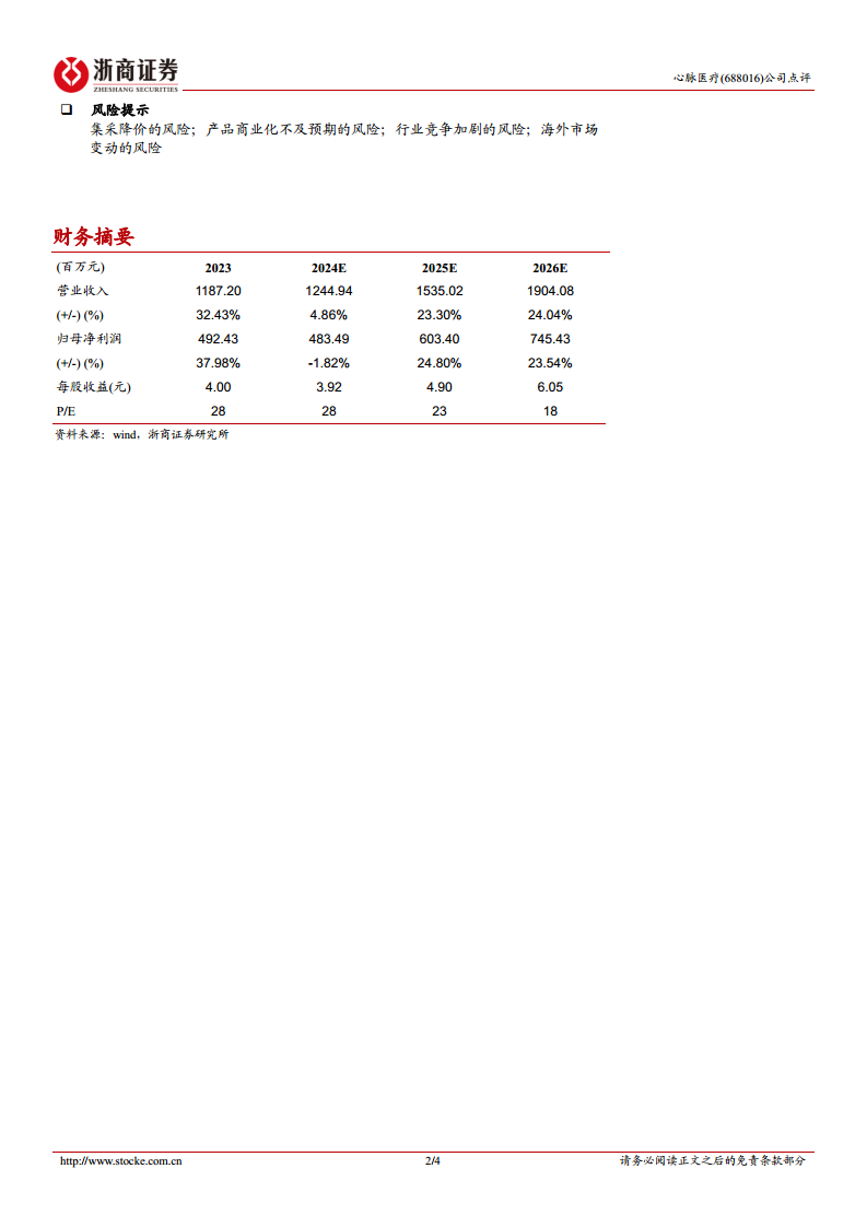 尽管核心产品终端价格下降可能对2024年业绩造成短期影响,但公司凭借其强大的产品创新能力、持续的新品商业化以及加速的海外市场拓展,有望在主动脉市场扩容中实现加速放量,并构建新的增长曲线,从而支撑其长期收入高增长和利润率的维持。