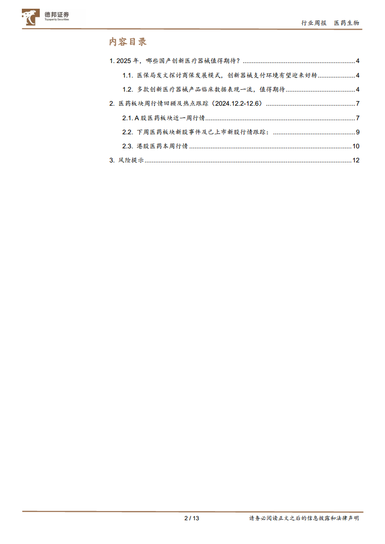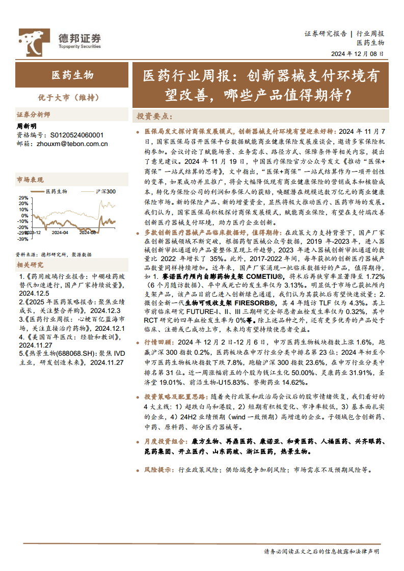 医药行业周报:创新器械支付环境有望改善,哪些产品值得期待?