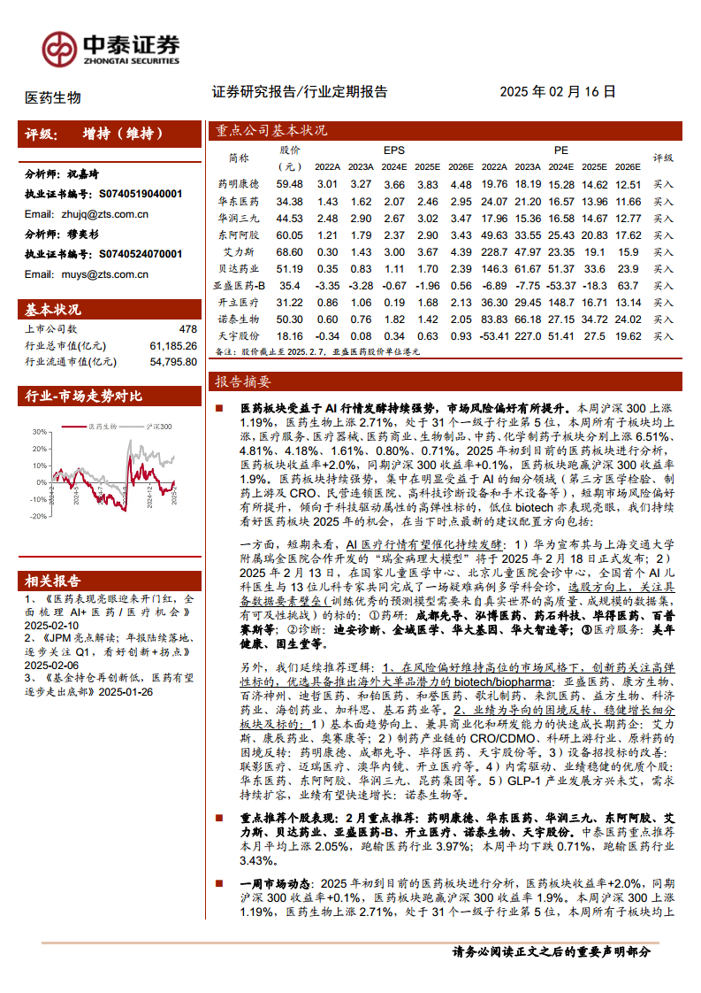 本周中泰证券发布了多份医药行业相关报告,为投资者提供了深入的市场分析和投资建议。