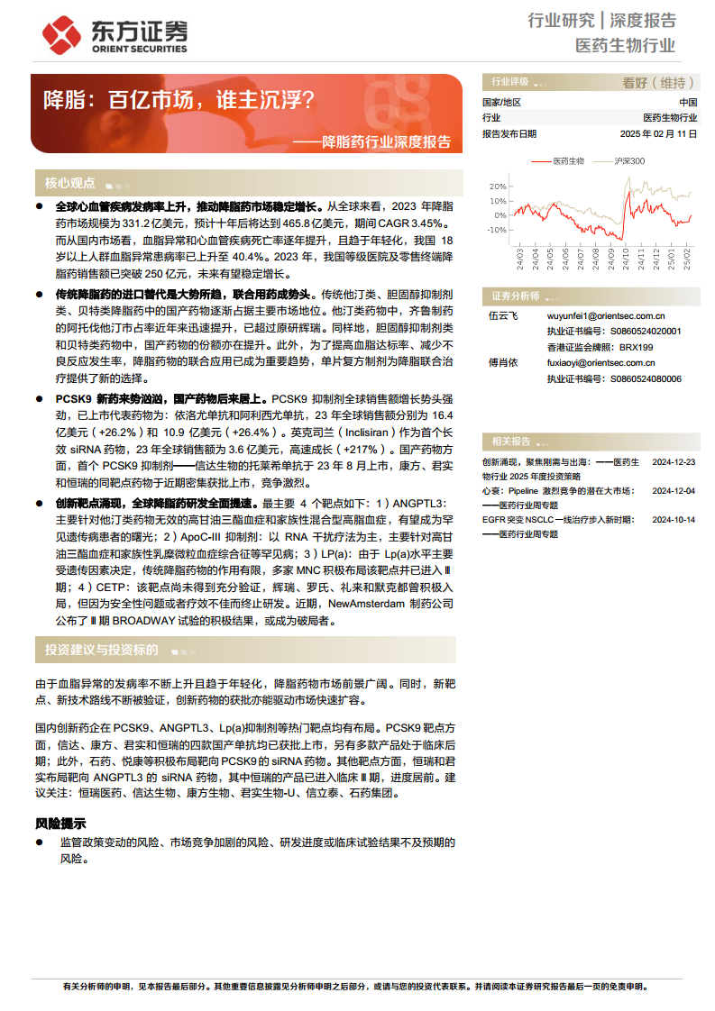 降脂药行业深度报告:降脂:百亿市场,谁主沉浮?