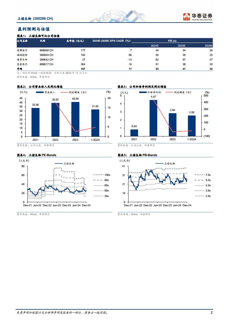 华泰研究推测,合作期内的前2年有望较快完成欧洲各地医保覆盖、患者教育等工作,随后进入陡峭放量阶段。基于此,华泰研究暂维持公司2024-2026年EPS预测分别为0.57元、0.71元和0.89元。公司作为国内血糖监测行业龙头,考虑到CGM国内销售良好且海外后续积极放量可期,叠加其业绩增速更快(预计2024-2026年EPS复合年增长率CAGR为21%,高于可比公司Wind一致预期均值17%),给予公司2025年53倍PE估值(可比公司Wind一致预期均值41倍),对应目标价37.87元(前值为34.30元,主要考虑可比公司PE均值有所提升),维持“买入”评级。