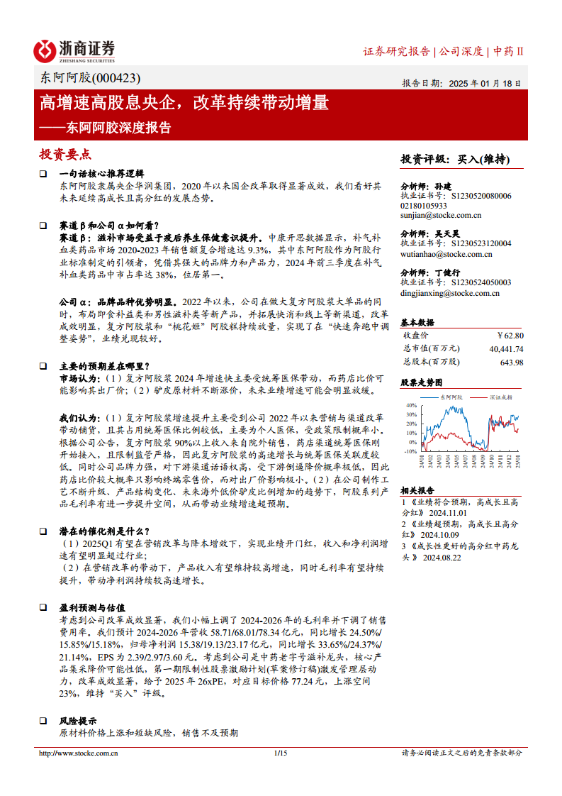 东阿阿胶深度报告:高增速高股息央企,改革持续带动增量