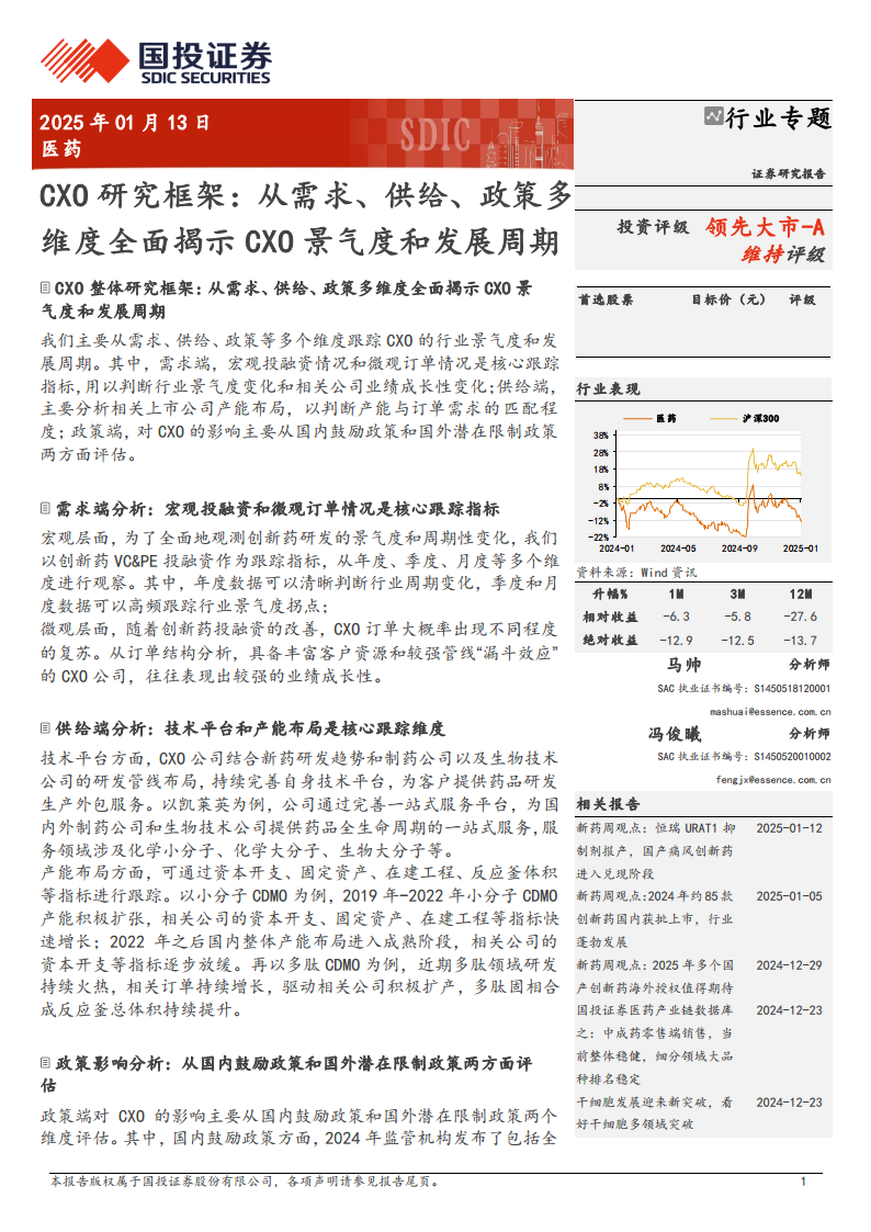 本报告构建了一个全面的CXO行业研究框架,从需求、供给和政策三个核心维度深入剖析其景气度与发展周期。报告强调,需求端是判断行业景气度变化和公司业绩成长性的关键,主要通过宏观投融资情况和微观订单数据进行跟踪。供给端则侧重于技术平台和产能布局,以评估其与市场需求的匹配度。政策端的影响则分为国内鼓励政策和国外潜在限制政策两方面进行评估。