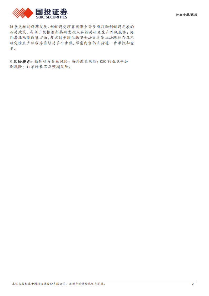 本报告通过对CXO行业需求、供给和政策的全面分析,揭示了行业景气度和发展周期的核心驱动因素。当前,全球特别是美国创新药VC&PE投融资的显著复苏,正有力驱动CXO订单回暖和业绩增长。历史数据也反复证明,创新药投融资景气度与CXO公司的业绩表现及其在资本市场的超额收益密切相关。在供给侧,CXO公司需持续强化技术平台建设并优化产能布局以匹配市场需求。同时,国内一系列鼓励创新药发展的政策将为行业提供有力支撑,而海外潜在限制政策的不确定性则需持续关注。综合来看,CXO行业正处于复苏通道,具备强大客户资源、优质订单和高效项目转化能力的头部企业有望持续受益。然而,新药研发失败、海外政策不确定性、行业竞争加剧以及订单增长不及预期等风险仍需警惕。