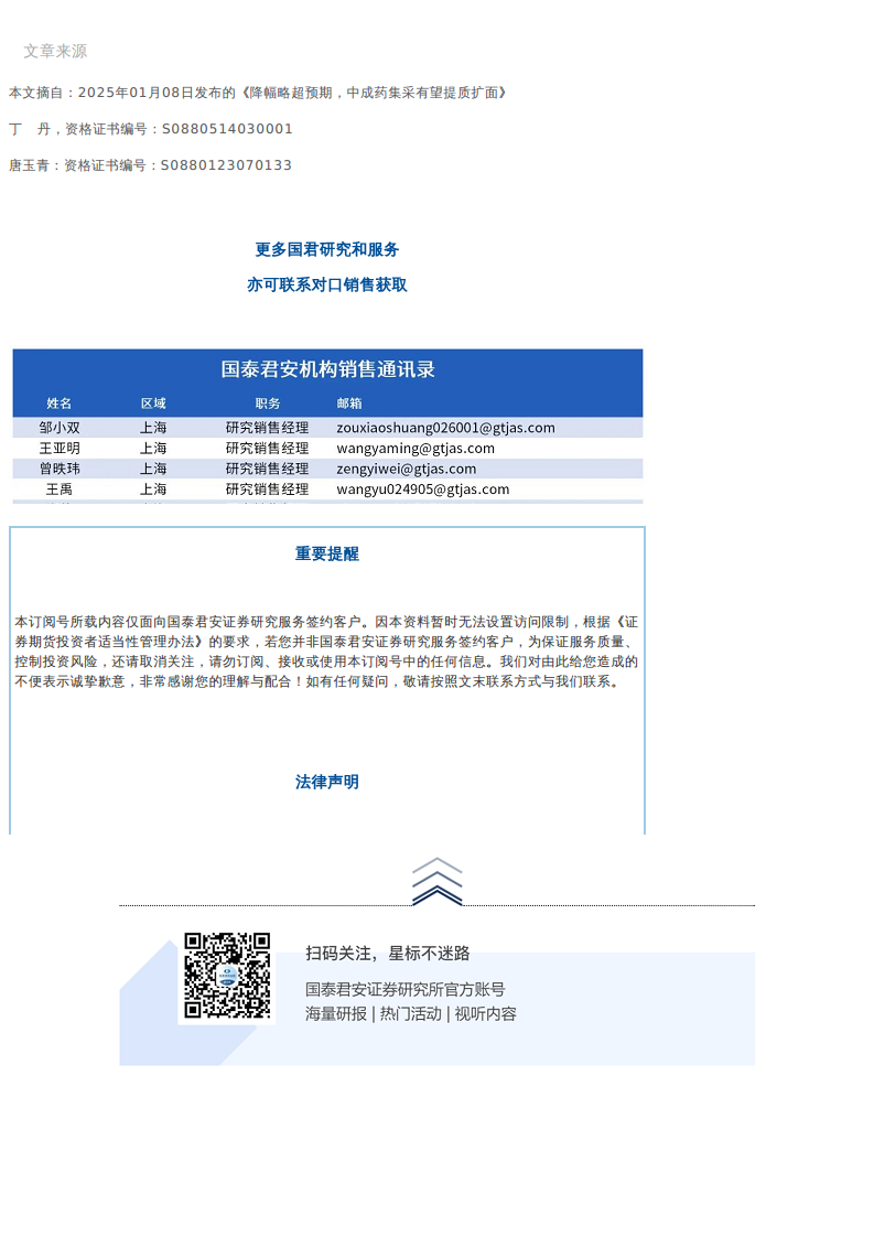 国君医药|降幅略超预期,中成药集采有望提质扩面