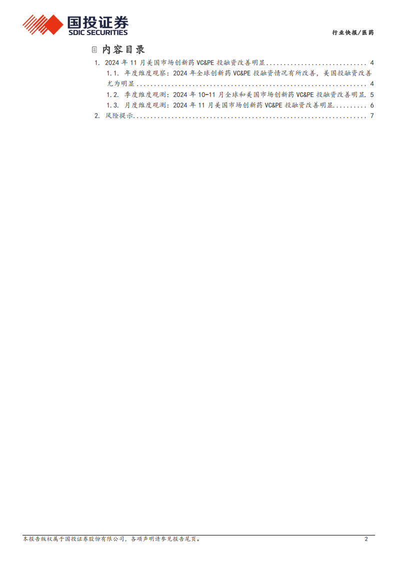 医药产业链数据库之:创新药投融资,2024年11月美国市场创新药VC、PE投融资持续明显改善