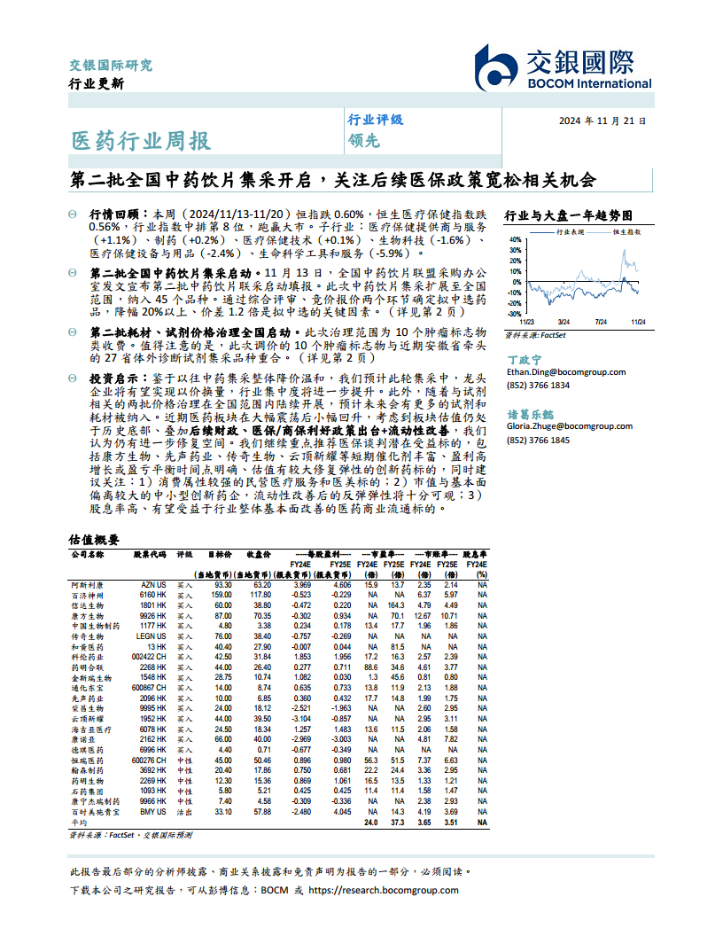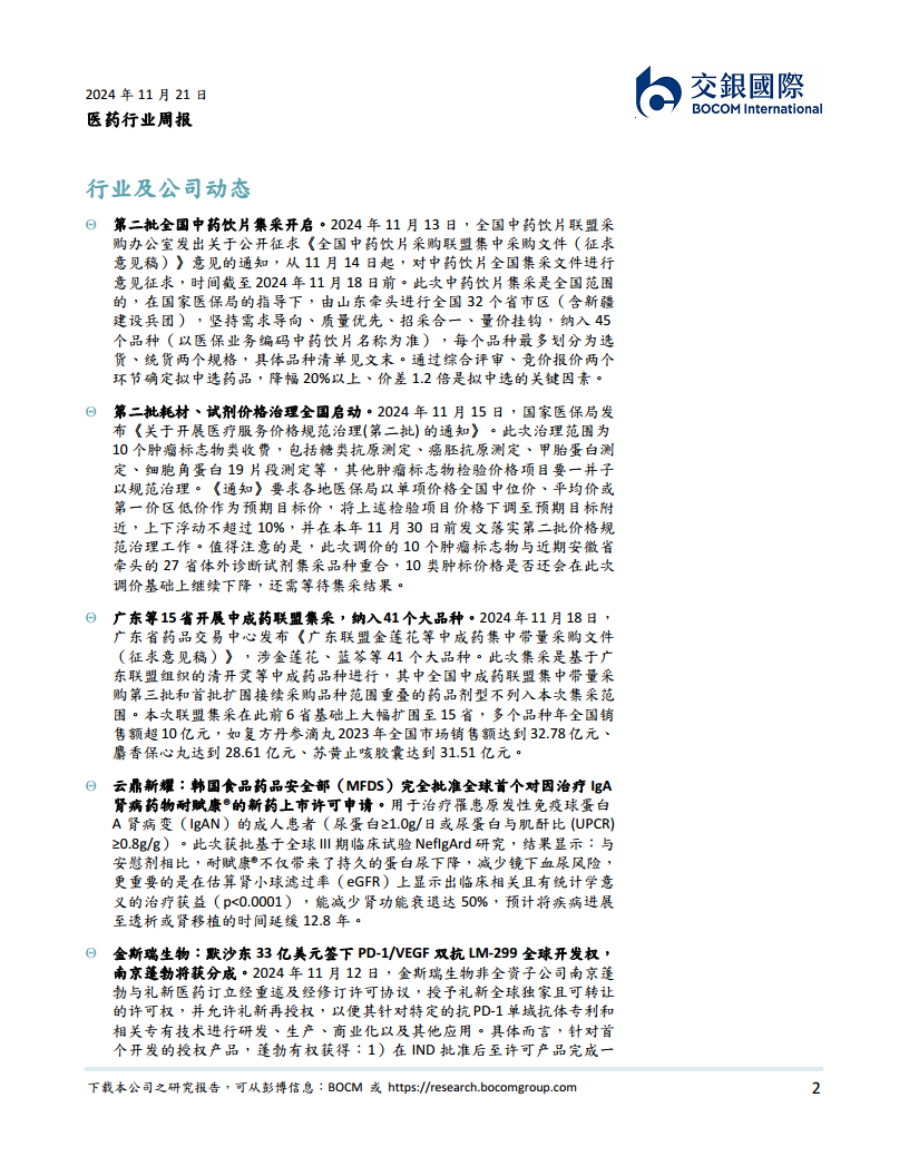 医药行业周报:第二批全国中药饮片集采开启,关注后续医保政策宽松相关机会