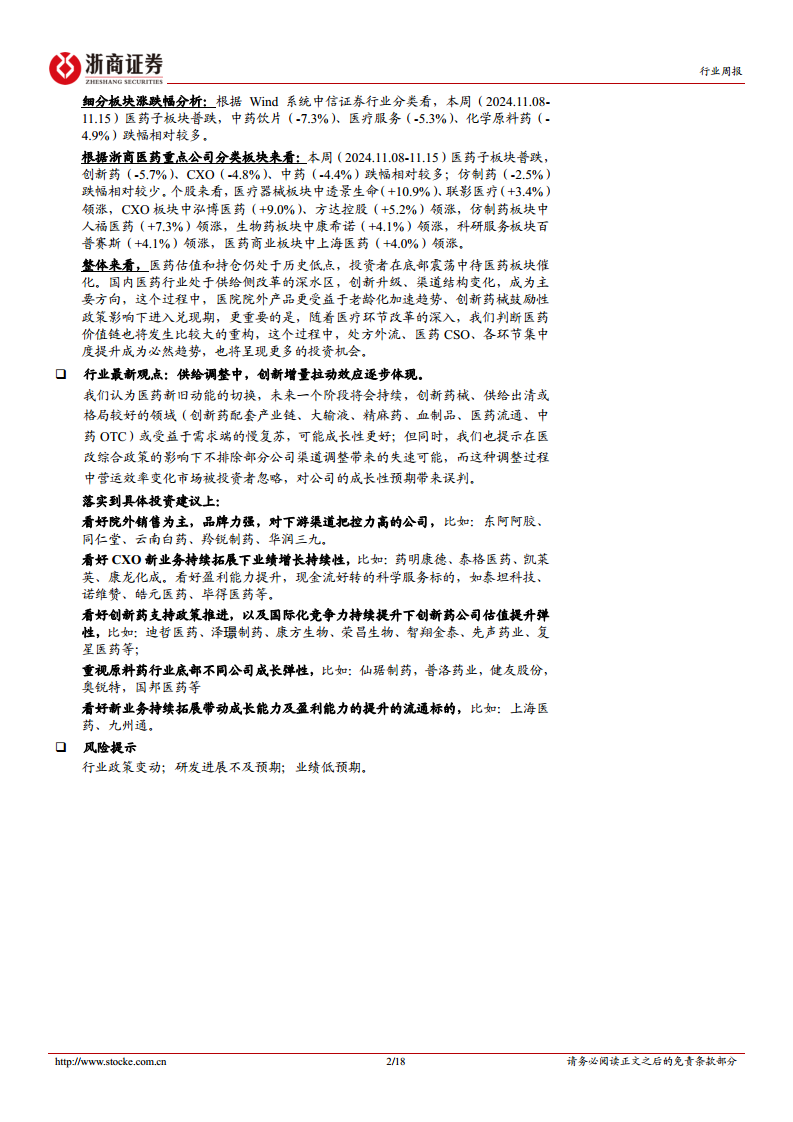 报告强调,尽管医药板块近期表现普跌,但行业估值和持仓仍处于历史低点,预示着底部震荡后可能迎来催化。创新药械、创新配套产业链、特定治疗领域(如大输液、精麻药、血制品、中药OTC)以及医药流通等领域,在需求端慢复苏和政策鼓励下,有望展现更好的成长性。同时,医保预付金等政策的出台,旨在优化行业资金流转,减轻医疗机构压力,间接利好医药企业稳健运行。