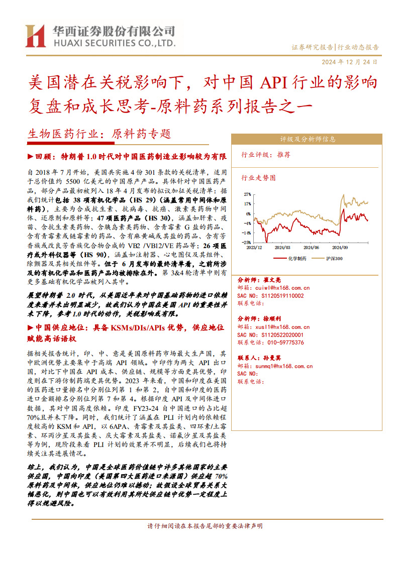 生物医药行业原料药专题:原料药系列报告之一,美国潜在关税影响下,对中国API行业的影响复盘和成长思考