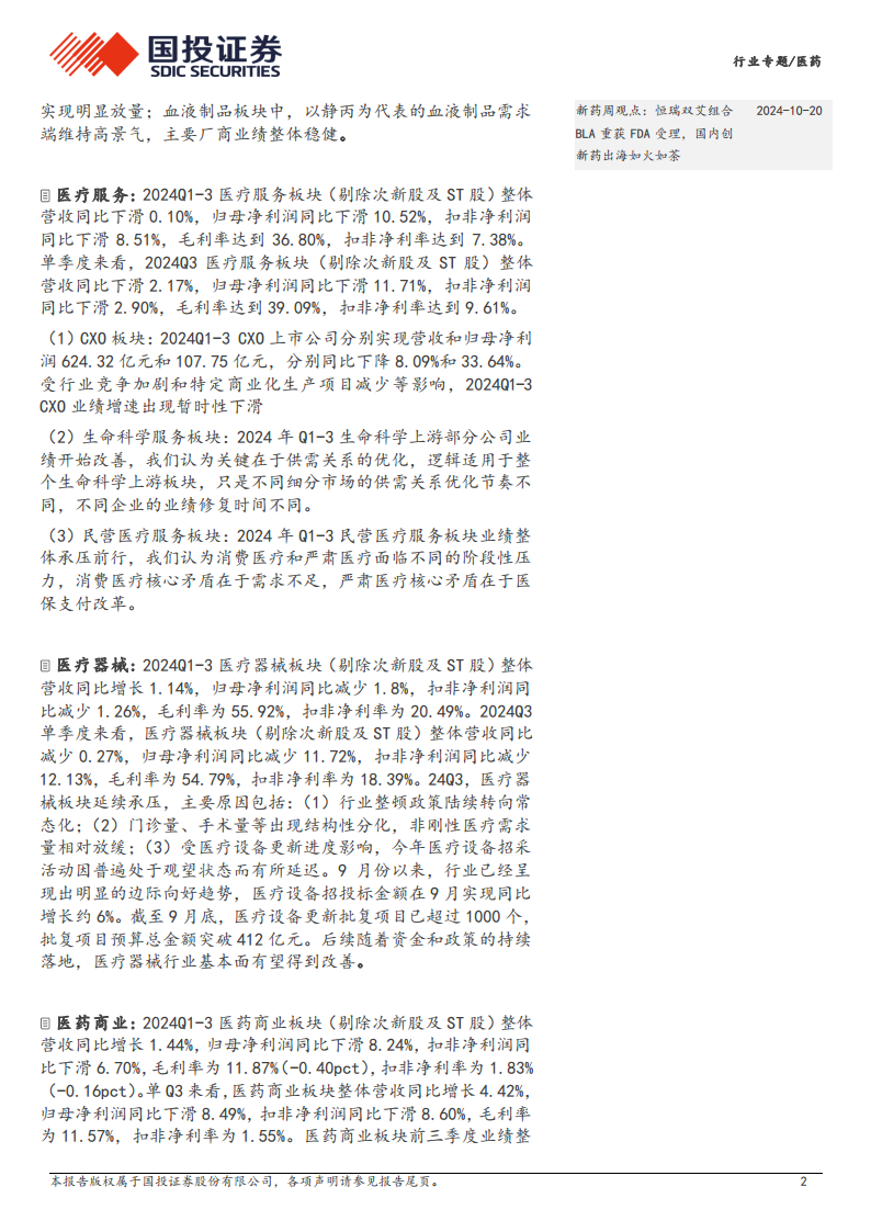 2024Q1-3医药行业整体承压,期待后续基本面改善