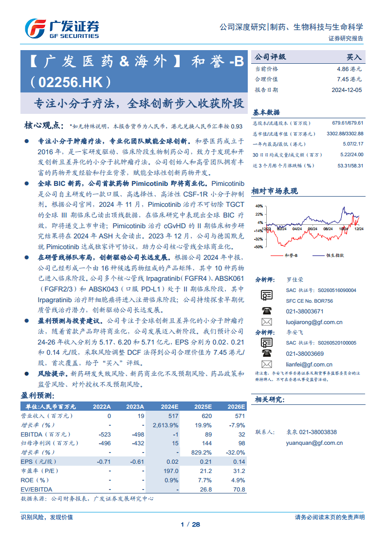 和誉B(02256.HK)专注小分子疗法,全球创新步入收获阶段