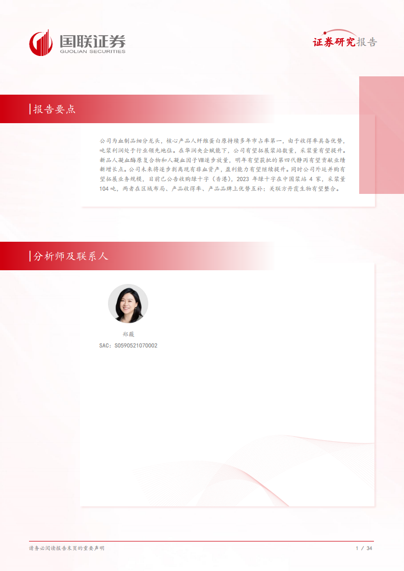 本报告核心观点认为,博雅生物作为血制品细分龙头,凭借其核心产品人纤维蛋白原的市场领先地位和吨浆利润优势,在华润央企赋能下,正通过内生增长(浆站拓展、新产品放量)和外延并购(收购绿十字、整合丹霞生物)双轮驱动,实现盈利能力的持续提升和业务规模的快速扩张。