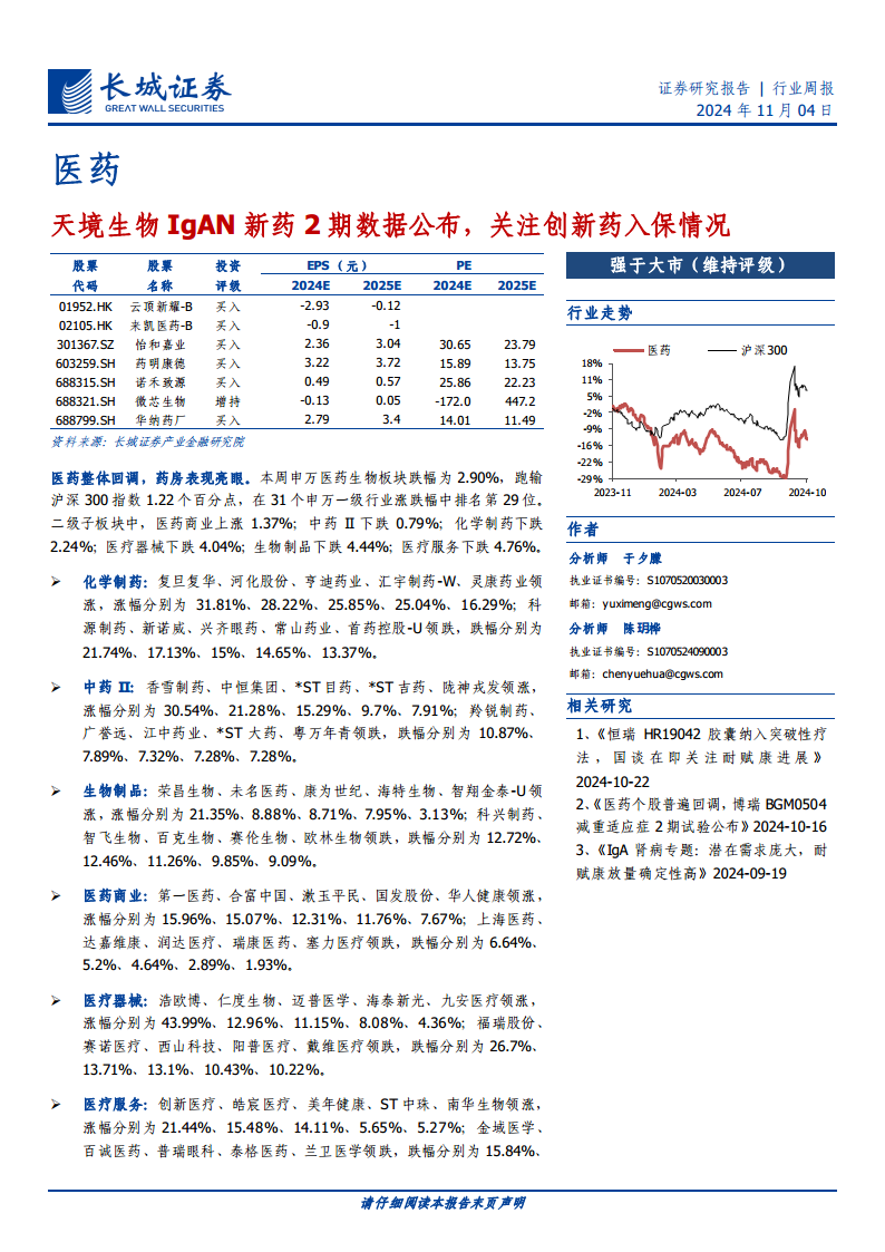 天境生物IgAN新药2期数据公布,关注创新药入保情况