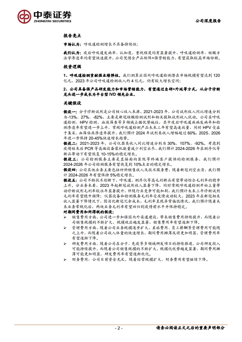 检测服务方面,公司检测服务主要是直接面向医院等终端客户提供的检测服务。我们预计2024-2026年公司检测服务有望恢复到10%左右的稳定增长。