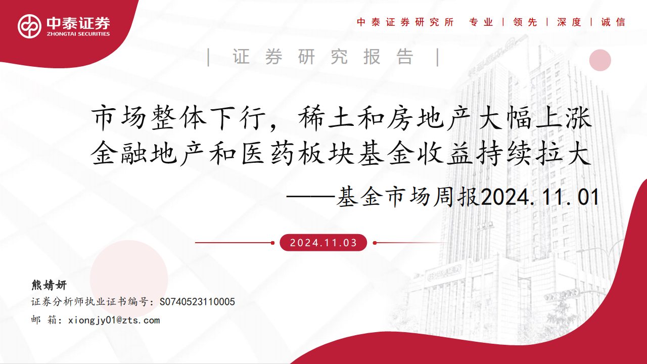 基金市场周报:市场整体下行,稀土和房地产大幅上涨金融地产和医药板块基金收益持续拉大