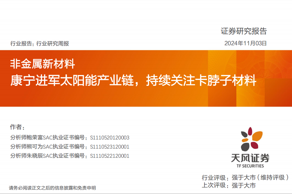 非金属新材料行业研究周报:康宁进军太阳能产业链,持续关注卡脖子材料