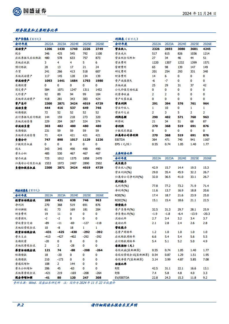 - 营业收入和毛利率假设: 预计2024-2026年药品制剂业务收入同比增速分别为13%、18%、15%,毛利率分别为82%、81%、80%。药用辅料业务收入同比增速分别为32%、30%、25%,毛利率维持在25%。原料药业务收入同比增速分别为33%、30%、25%,毛利率维持在50%。
