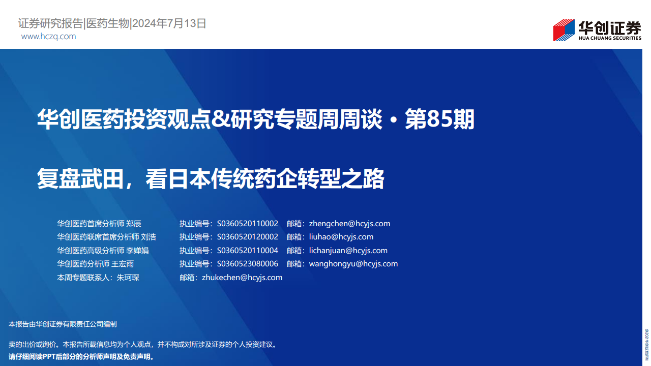 华创医药投资观点、研究专题周周谈第85期:复盘武田,看日本传统药企转型之路